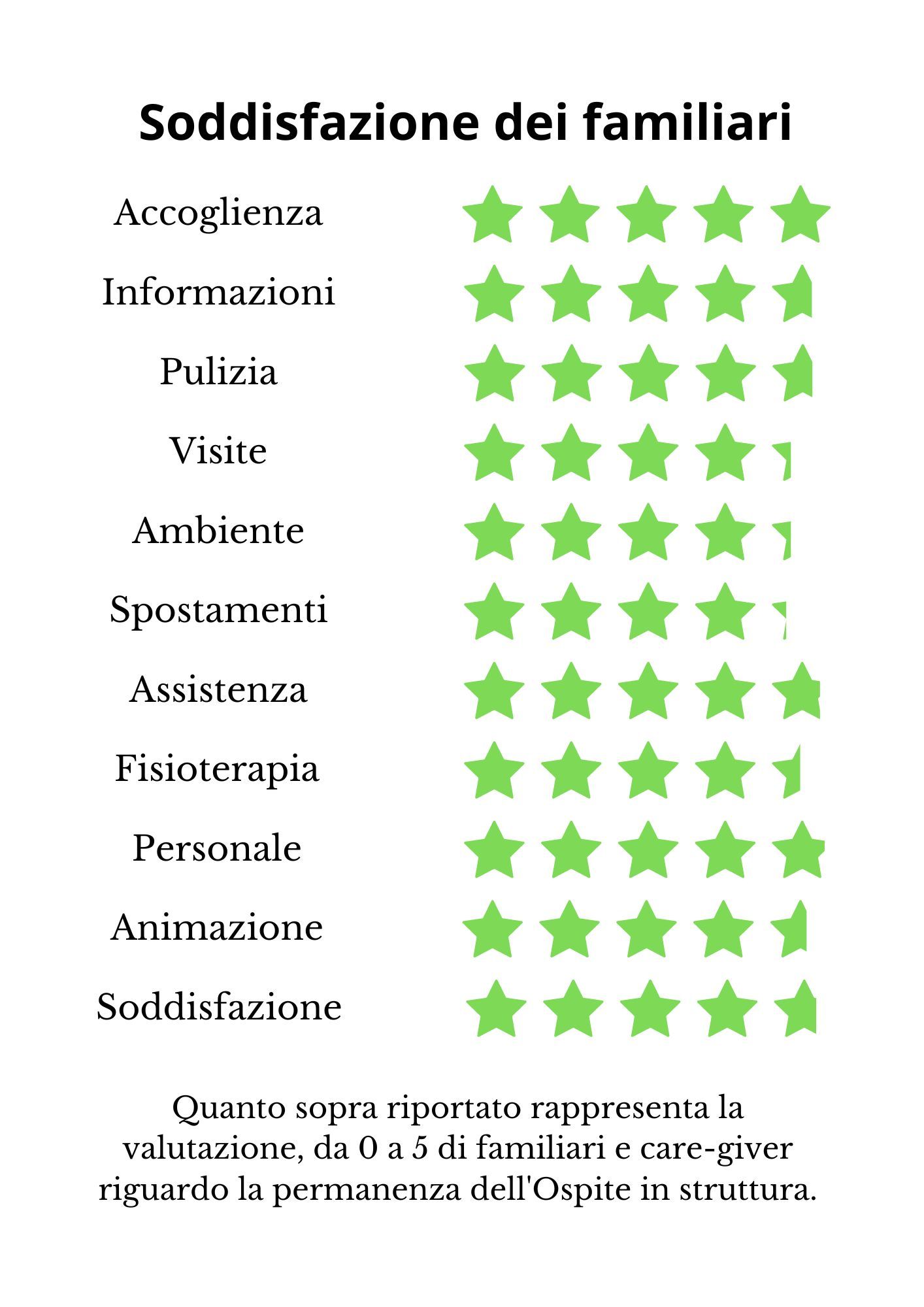 Il grafico riporta i dati relativi alla soddisfazione degli ospiti della nostra struttura